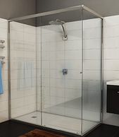 The Dimension shower screen is a fantastic style choice for value and performance. As pictured, it can be sill-less. Removing the sill of the shower door gives unobstructed movement from the bathroom into the shower when barrier-free access is required.